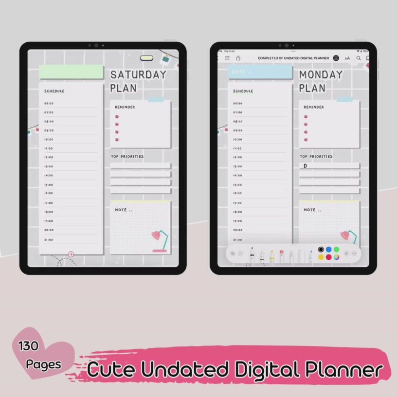 130-Page Undated Cute Digital Planner – Health, Productivity & Finance Trackers | Hyperlinked PDF for Easy Navigation