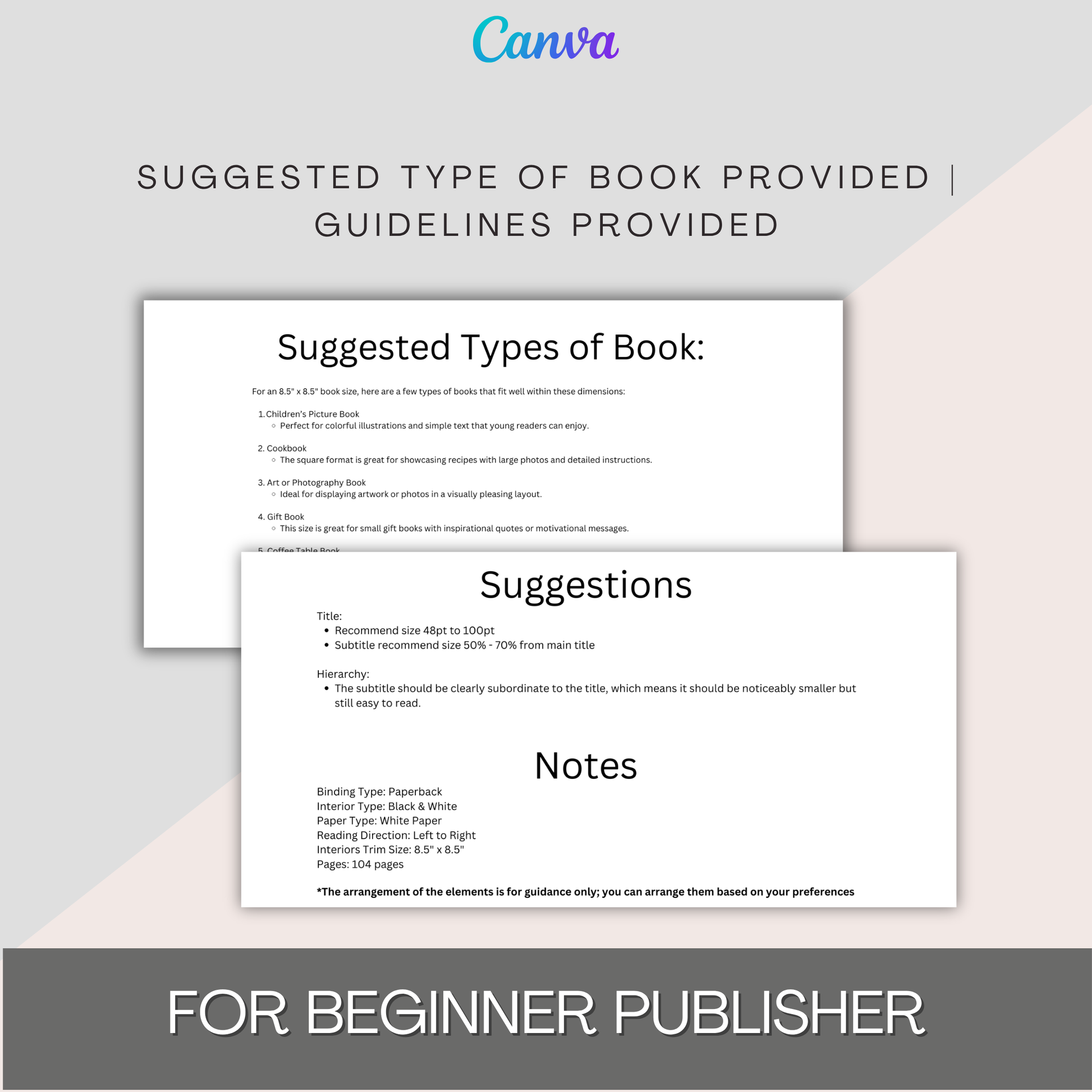 This starter kit includes templates in the popular 8.5" x 8.5" size, accommodating both bleed and no bleed options to suit your project’s needs. The editable files allow you to customize every aspect of your book's design, from the cover art to the interior layout, ensuring your book stands out in a competitive market.